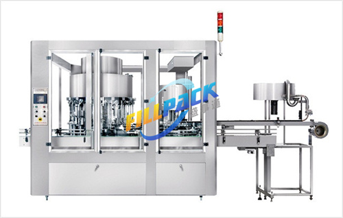 1, The filling capping machine combines the gravity filling method and vacuum filling method in one machine. It takes the advantage of gravity and negative pressure from the vacuum pump to create a pressure difference between buffering tank and container to fill. Fast speed and equal liquid level.